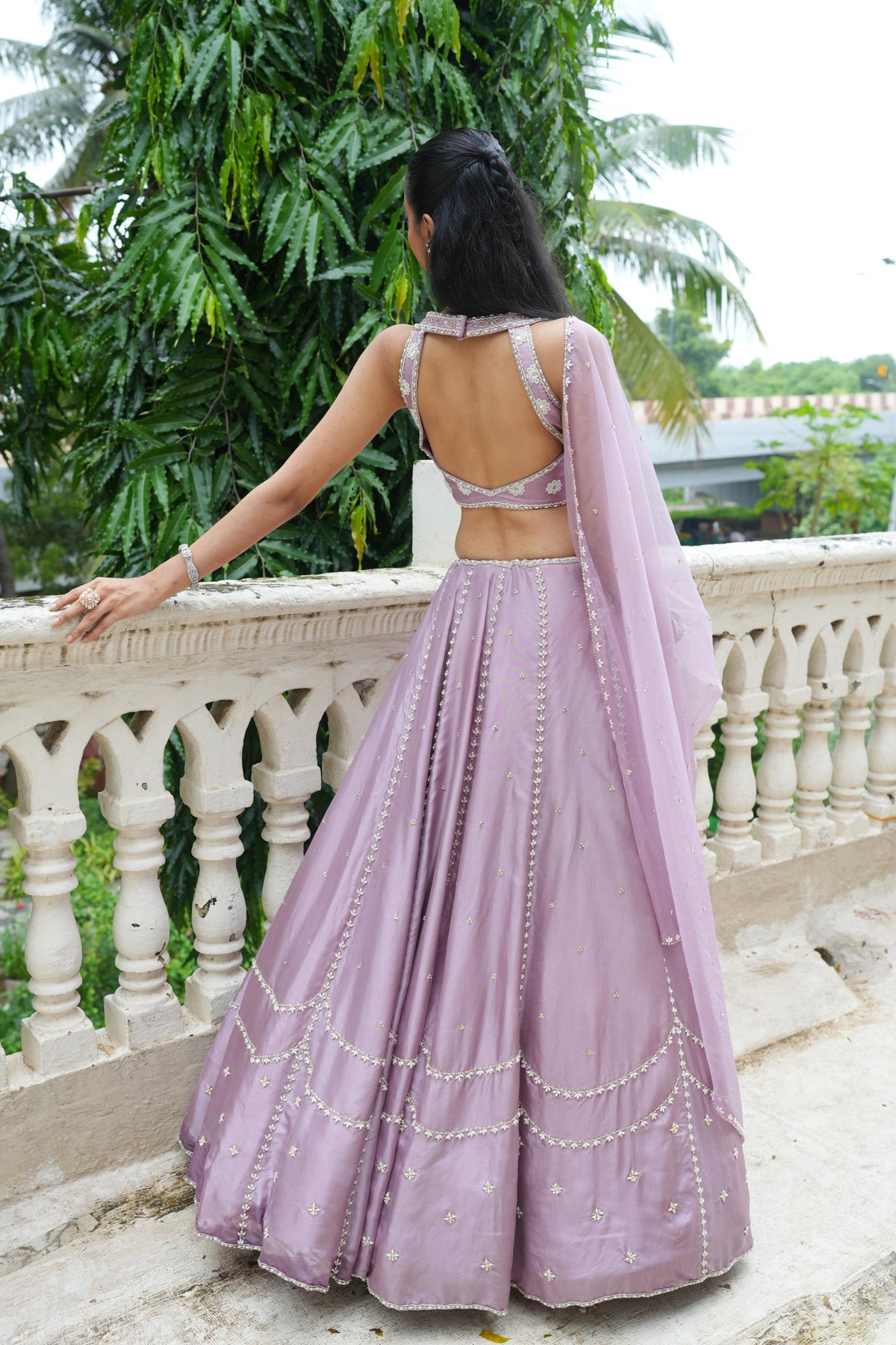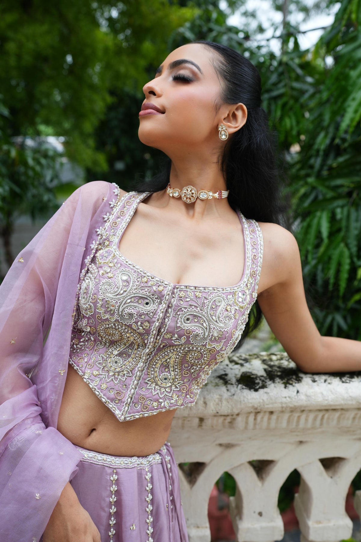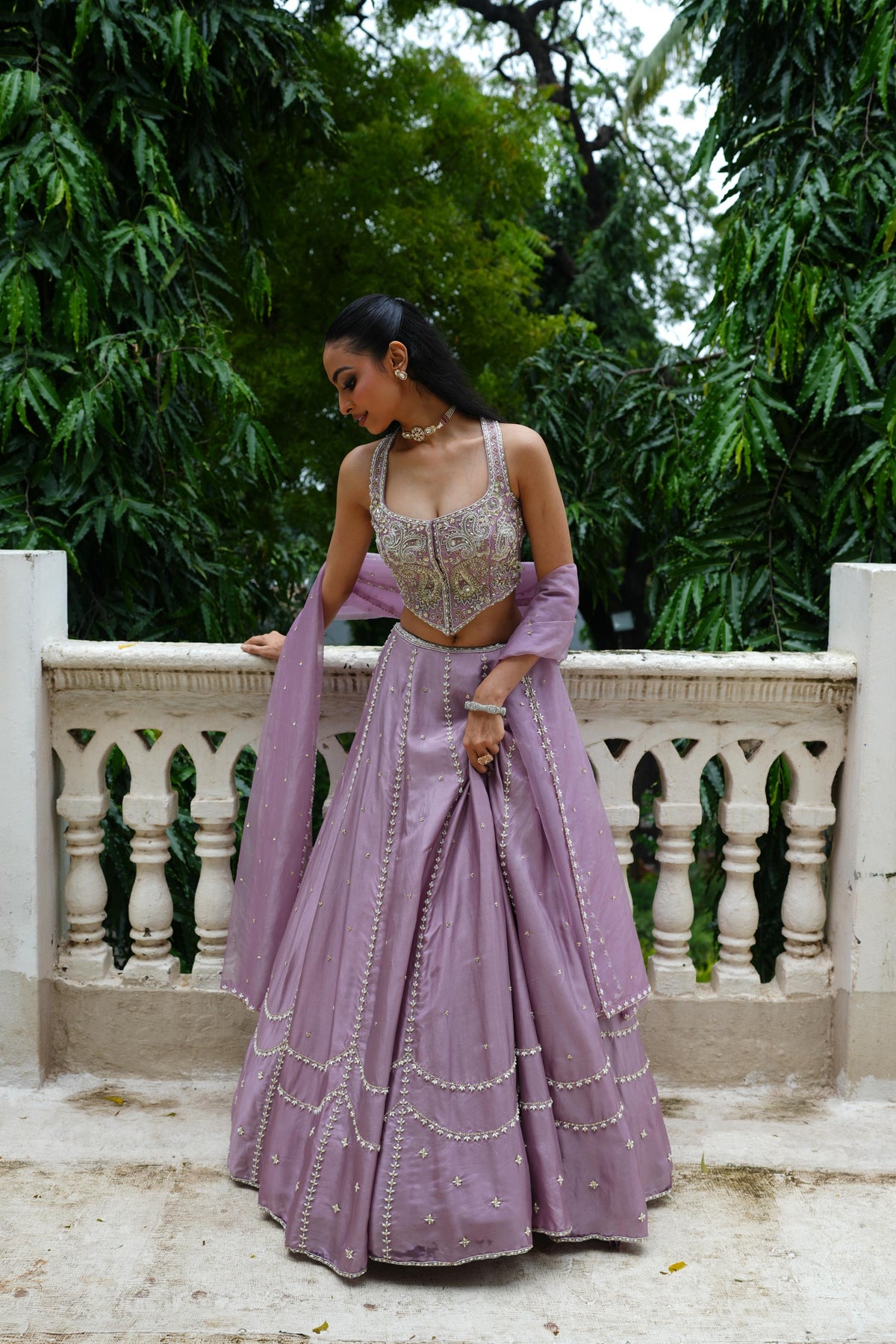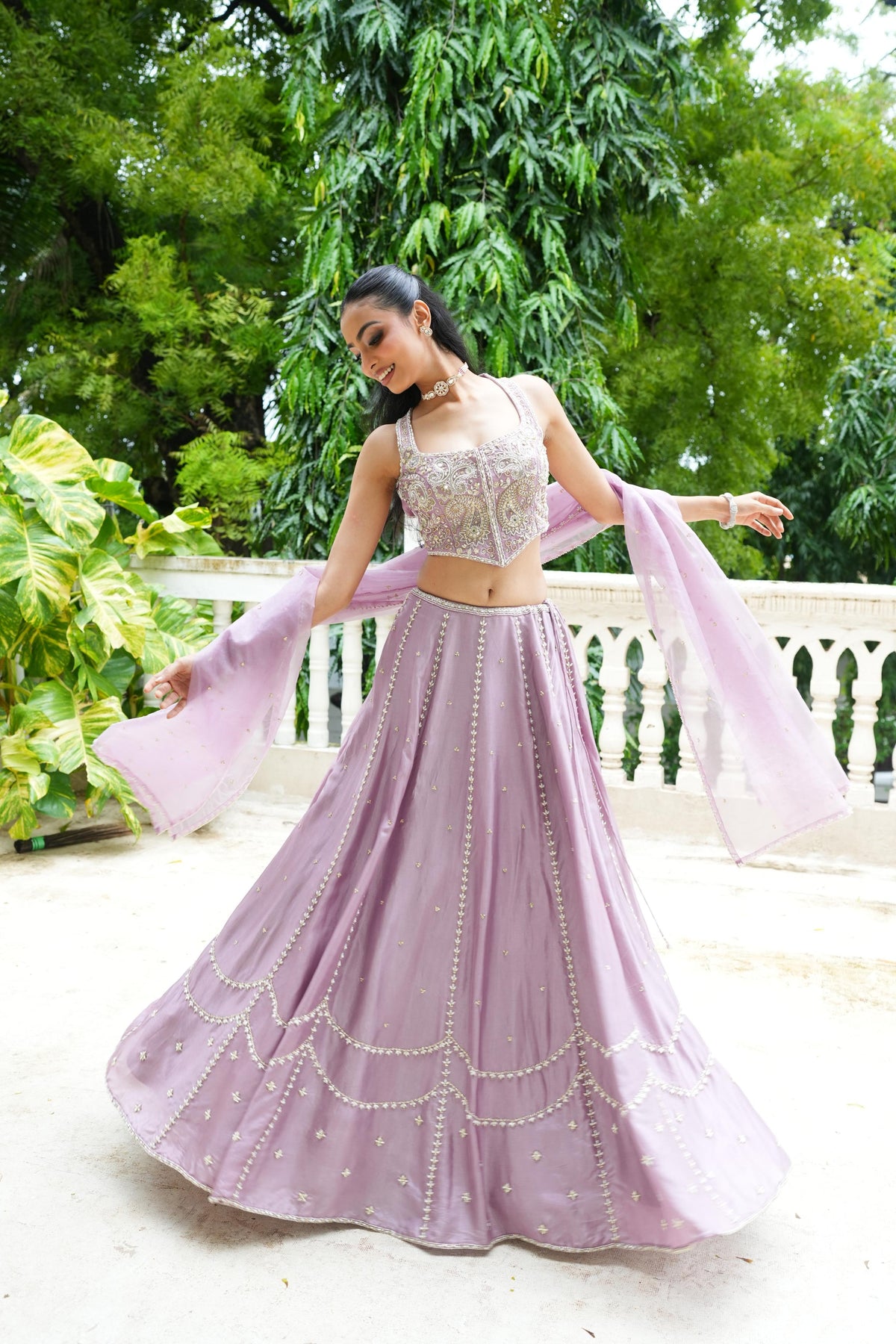 Featuring Lavender Lehenga with heavily embroidered blouse embroidered in Pearl drops, Glass Beads, Pearl, Sequence. It is paired with matching embroidered dupatta.