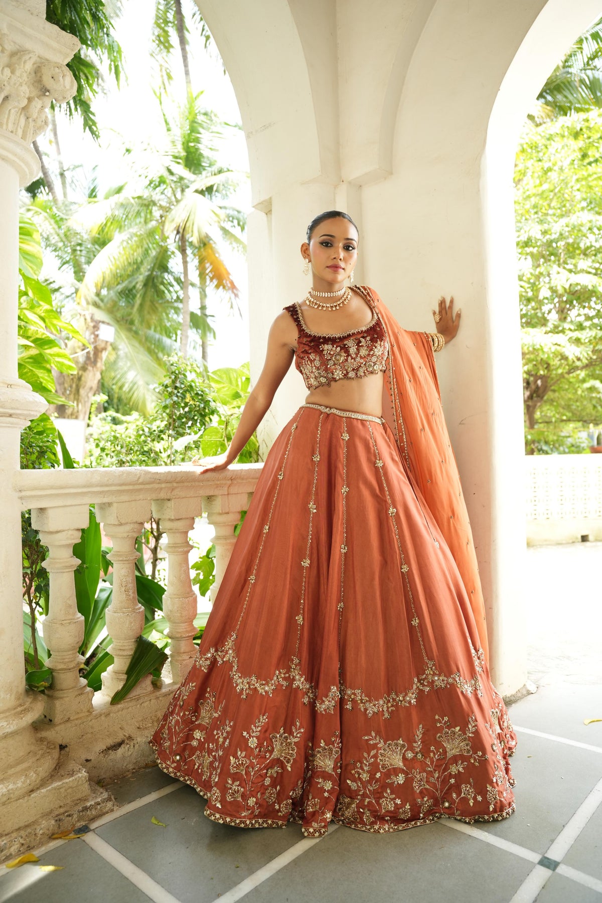 Inform when this item available Mitti Rust Brown (Velvet Blouse) Lehenga