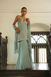 Inform when this item available Pastle Blue (Zari InCut Top) Sharara Set