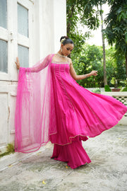 Inform when this item available Gulabi Pink (Strap) Anarkali With Sharara Set